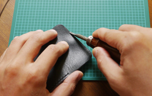 手順16. はみ出した部分を革包丁でカットしていきましょう。